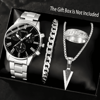Elevate your everyday style with this sophisticated 4-piece men's jewelry set, featuring a precision quartz watch and matching steel accessories. This versatile collection includes a stylish Cuban bracelet, a durable snake bone necklace, and a coordinating ring, perfect for formal or casual wear. Crafted from high-quality steel, each piece offers a sleek, modern aesthetic that complements any outfit. This complete set makes an exceptional gift for friends or a refined addition to your own personal collection.