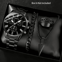 4-Piece Men's Quartz Watch Gift Set with Steel Accessories